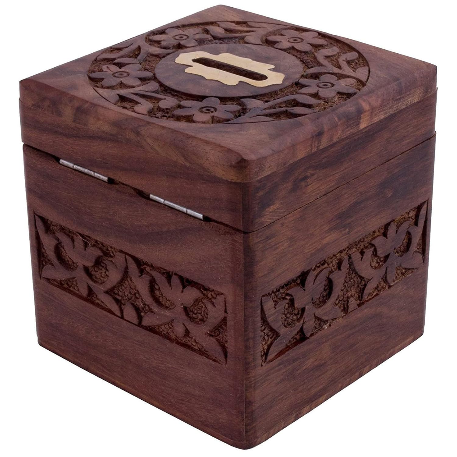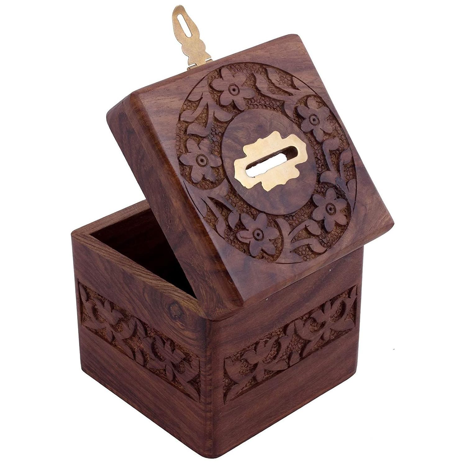 Wooden Handmade Piggy Coin Storage 4 Inch Fully Carved Coin Bank